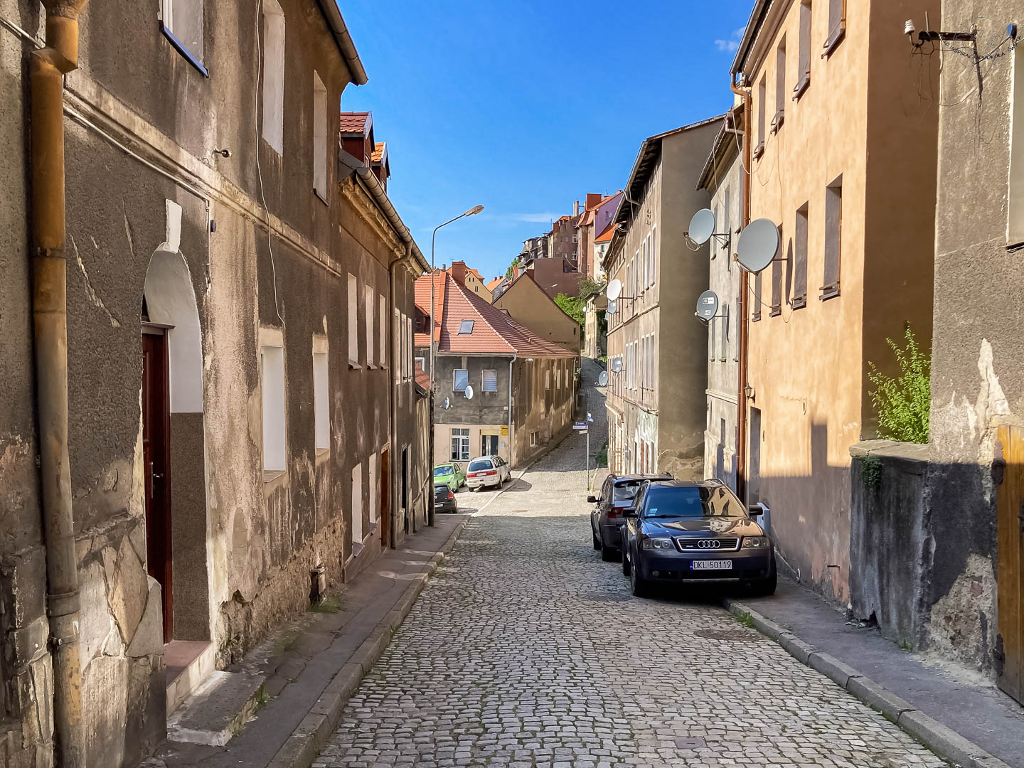 Bystrzyca Kłodzka przypomina mi trochę toskańskie miasteczka. Strome uliczki, podwórka z wiszącym praniem, górujące nad miastem wieże kościołów, interesujące zakamarki i kocie łby odbijające echo naszych kroków. Bystrzyca Kłodzka ma zachowany jeszcze z czasów średniowiecza oryginalny układ urbanistyczny, więc spacer po miasteczku to spacer po śladach historii tworzącej się setki lat.