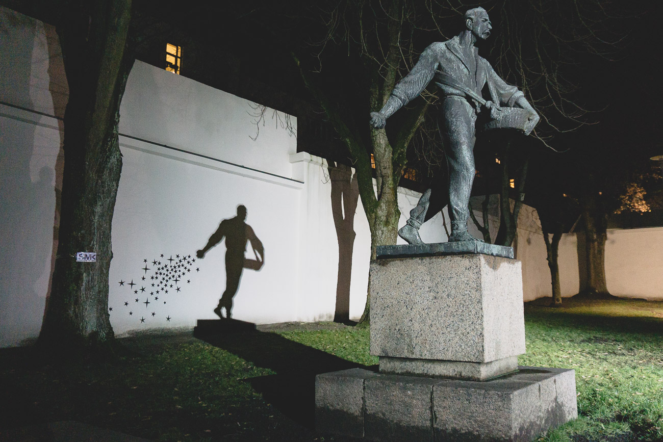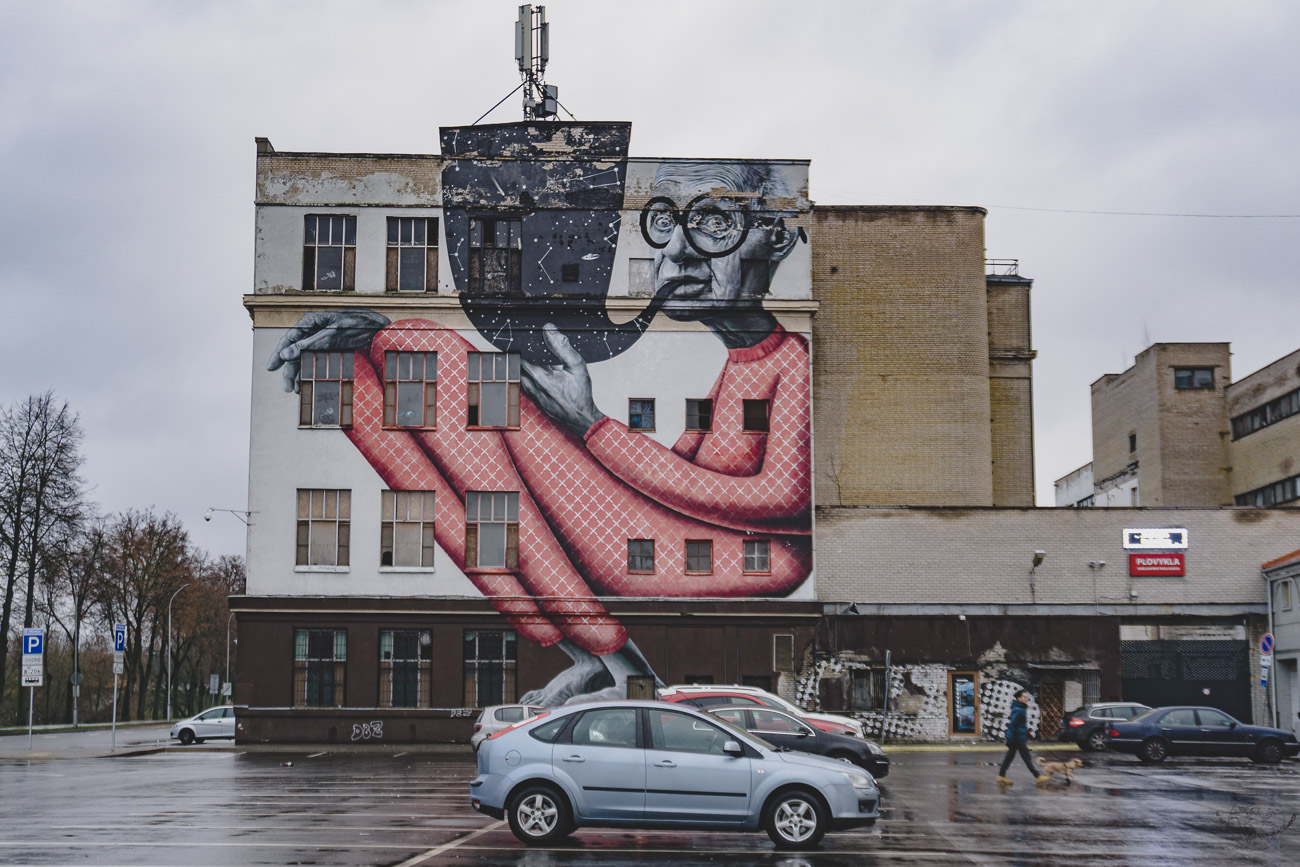 Przygodę z kowieńskim streetartem warto zacząć do ulicy Jonavos 3, gdzie znajduje się najsłynniejszy mural Kowna – The Old Wise Man. Ten malunek na ścianie nieczynnej już fabryki obuwia zapoczątkował cykliczny festiwal murali w Kownie o nazwie NYKOKA. Warto dodać, że streetart w tym mieście to nie tylko murale, ale również całkiem interesujące pomniki. Koniecznie zobaczcie w porze wieczornej pomnik Siewcy Gwiazd. Za dnia nie wyróżnia się niczym szczególnym, ale już wieczorem dzieje się tam magia!