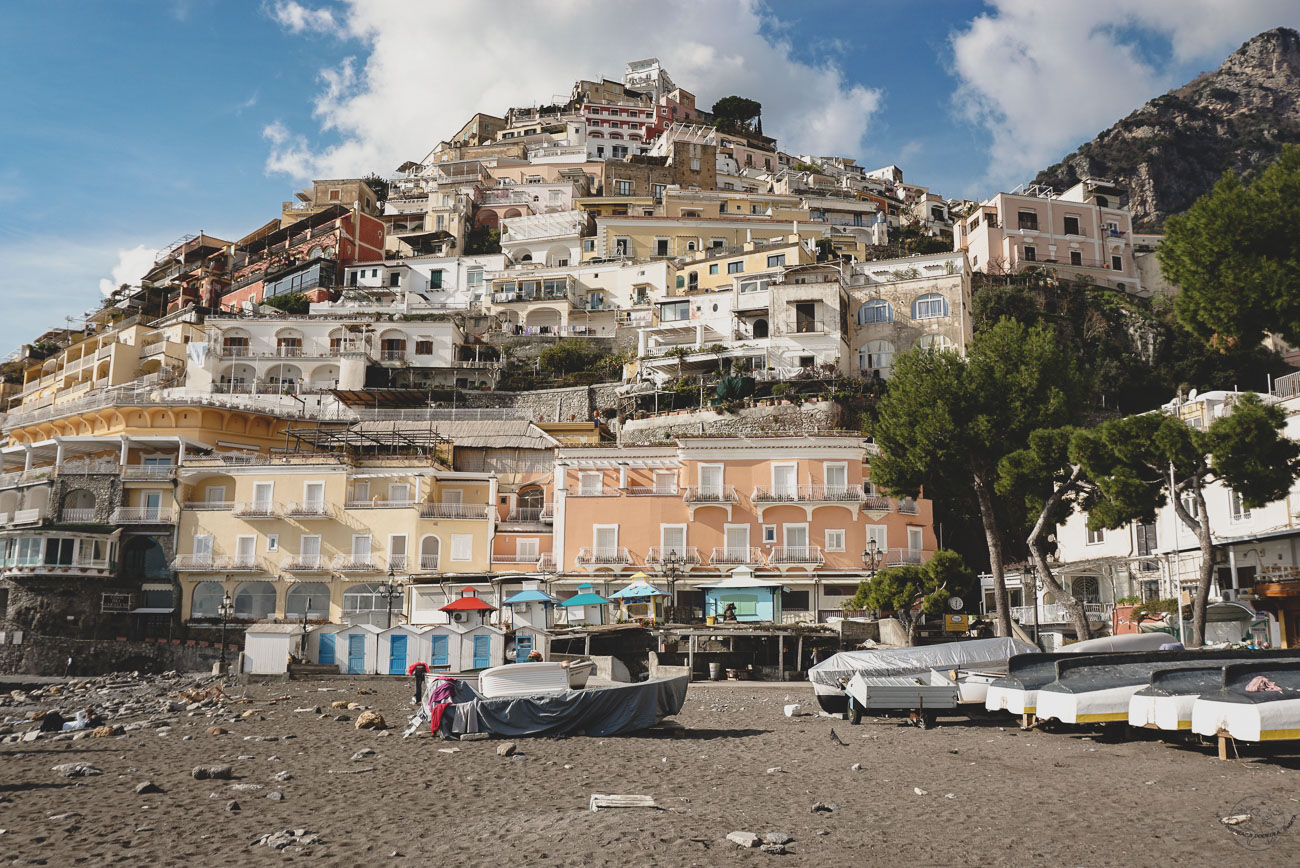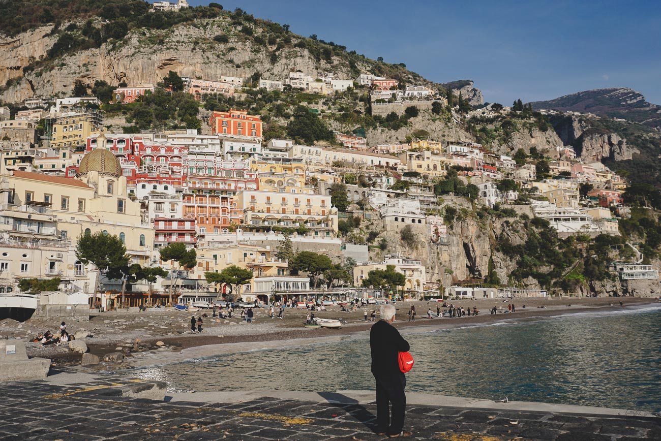 Positano to najdroższe i najbardziej zatłoczone miasto na Wybrzeżu Amalfitańskim. W sezonie jest podobno taki ścisk, że nie można oddychać. Plaże toną w leżakach i ludziach spragnionych włoskiego Dolce Vita. Positano i Wybrzeże Amalfi poza sezonem to już zupełnie inna bajka! Wszystkie miasta wzdłuż wybrzeża wyludnione i zamknięte na cztery spusty, a po ulicach każdego hulał wiatr. Od czasu do czasu pojawiał się jakiś autobus z turystami, którzy rozczarowani zamkniętymi sklepami i restauracjami uciekali dalej.