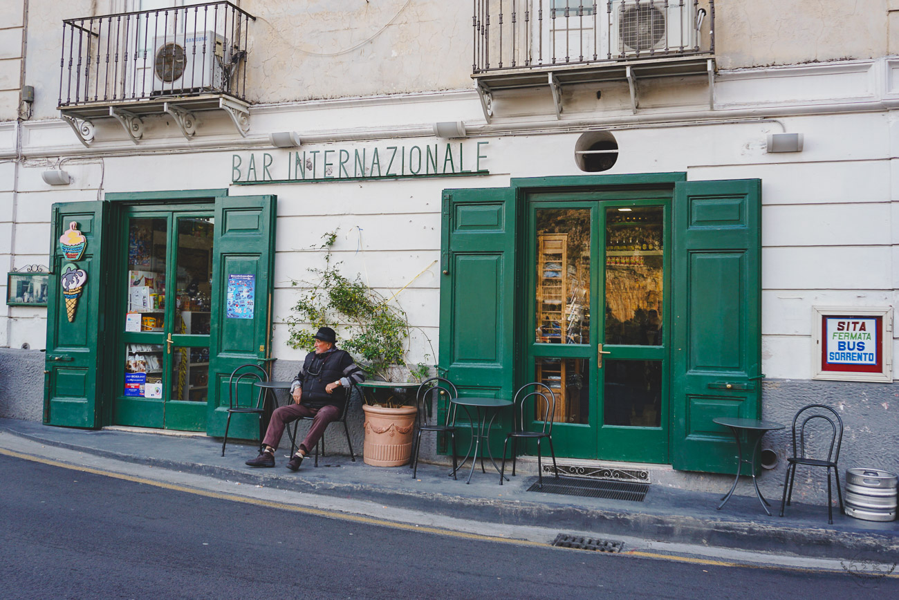 Jeśli na Wybrzeżu Amalfi istnieje centrum ogarniania wszechświata to zdecydowanie swoją siedzibę ma w Barze Internazionale w Positano. Nie wiem w czym tkwi fenomen tego miejsca, bo i kawa podła i kanapki nieświeże, ale atmosfera tu panująca każe przymknąć oko na te niedogodności. Przy tym budynku krzyżują się wszystkie drogi włoskiego świata. Lokalsi przyjeżdżają skuterami na piwo, panowie z budowy czekają na swój transport do pracy i przyłączają się do tych od skuterów, a policjanci wpadają na kawę (za którą płacą dwa razy mniej niż turyści).