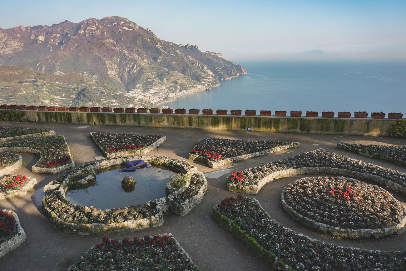 Ravello ze swoimi ogrodami oraz malowniczo położoną Villą Rufolo jest najczęściej wybieraną miejscówką na zdjęcia ślubne wśród włoskich par. Każdy chce mieć tutaj sesję, a najlepiej całą ceremonię ślubną! Z ogrodów w Ravello rozciąga się widok na bezkresne morze, dymiącą od czasu do czasu Etnę i pobliskie wzgórza usiane kolorowymi domami. Zachód słońca jest tak bajkowy, że ciężko się nasycić tym widokiem. A jak nie ma wokół nikogo, to magia tego miejsca jeszcze bardziej się potęguje. I mają tu najpiękniejsze posadzki na całym Wybrzeżu Amalfitańskim!