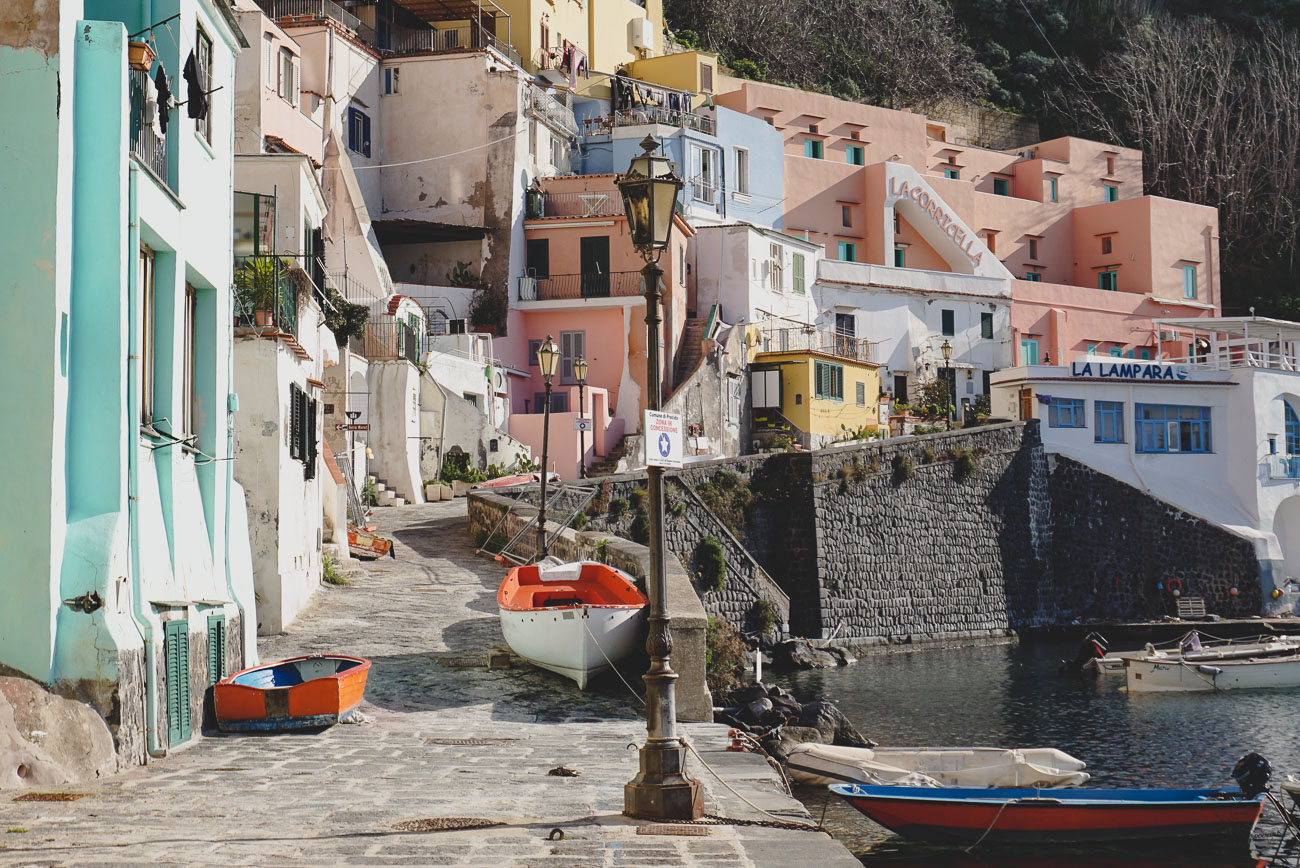 Życie toczy się tu niespiesznie, między jedną kawą z cornetto, a drugą. Uliczki są tak ciasne, że piesi muszą walczyć o swój kawałek drogi ze skuterami i samochodami. Czasem trzeba się było dosłownie przyklejać do ścian budynków żeby nie zostać rozjechanym. A jak dodamy do tego świeże owoce morza, kolorowe domy, jeszcze bardziej kolorowe łodzie i rybaków uwijających się w plątaninie sieci do połowów ryb, to mamy gotowy przepis na swoje miejsce na ziemi! W gratisie wyspa Procida dorzuca pachnące pranie wiszące między budynkami, głośne klaksony starych skuterów i malownicze zakamarki. A wszystko to zaledwie 40 minut drogi promem od Neapolu!